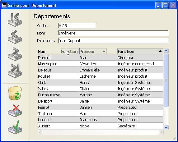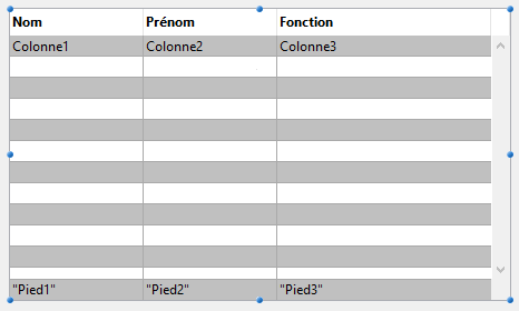 L’utilisateur peut modifier l’ordre des colonnes et (list box tableaux uniquement) des lignes en les déplaçant à l’aide de la souris (si cette action est autorisée) :
