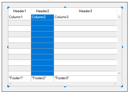Puede seleccionar una columna de list box en el editor de formularios haciendo clic en la columna cuando el objeto list box está seleccionado: