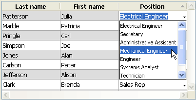 Lista de seleção: esta propriedade pode ser utilizada para associar uma Lista de valores a uma coluna do list box. Se você desenha uma lista, o usuário pode utilizar seus valores (mostrados em um menu suspenso) para modificar os valores da coluna e seu array associado: