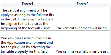 Lorsque cette propriété est activée pour au moins une colonne, la hauteur de chaque ligne est calculée automatiquement de sorte que le contenu des cellules tienne entièrement sans être tronqué. (sauf si l'option Retour à la ligne est désactivée). Toutes les colonnes ayant l'option cochée seront prises en compte pour calculer la hauteur de ligne.