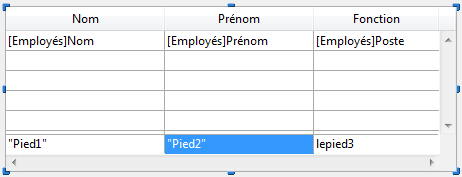 Note préliminaire : Pour pouvoir accéder aux propriétés des pieds d'une list box, vous devez avoir coché l'option Afficher pieds dans la Liste des propriétés de la list box (cf. Propriétés spécifiques des List box).