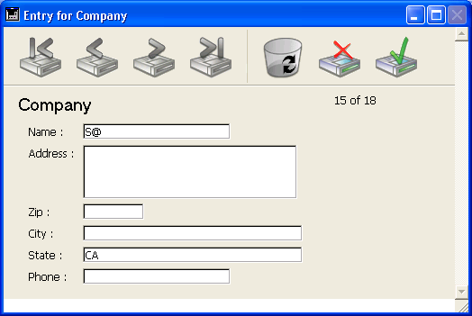 下図の例では、“S”で始まる名称の会社を検索するために、フォームによるクエリを使用しているところを示しています。
