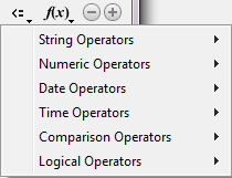 : をクリックすると、フォームによるクエリで使用できる全ての演算子の一覧の階層リストが表示されます。