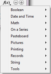 : をクリックすると、フォームによるクエリで使用できる全ての 4D ファンクションの一覧の階層リストが表示されます。SET ALLOWED METHODS を使用して、プロジェクトメソッドをこのリストに追加することもできます。