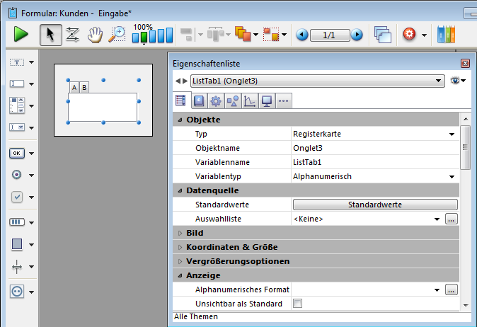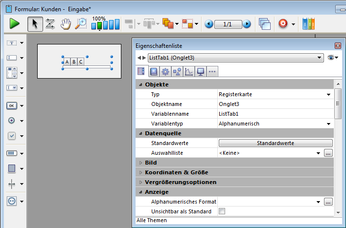 Im Formular erscheint die Registerkarte so: