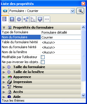 1. Affichez les propriétés du formulaire dans la Liste des propriétés.