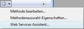 Sie können den Web Services Assistenten über die Seite Methoden aufrufen. Wählen Sie dazu im DropDown-Menü Optionen am unteren Rand den Eintrag Web-Services Assistent.