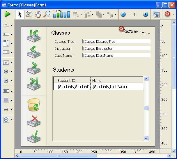 No formulário pai, crie um objeto de tipo subformulário utilizando a ferramenta Subformulário da barra de objetos (variação do último botão).