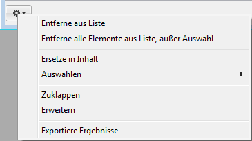 • Entferne alle Elemente aus Liste, außer Auswahl:  Entfernt alles aus dem Ergebnisfenster bis auf die gewählten Einträge.