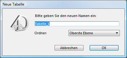 Sie können Tabellen jederzeit erstellen. 4D nennt die erste Tabelle [Tabelle_1] und weitere Tabellen mit fortlaufender Nummer bis zu [Tabelle_32767]. Sie können den Tabellen für Ihre Zwecke aussagekräftige Namen geben.