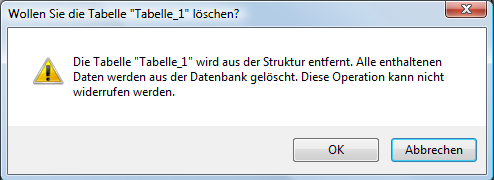 • Die Tabelle wird unwiderruflich aus der Struktur entfernt. Alle damit verknüpften Daten werden unwiderruflich aus der Datendatei gelöscht.