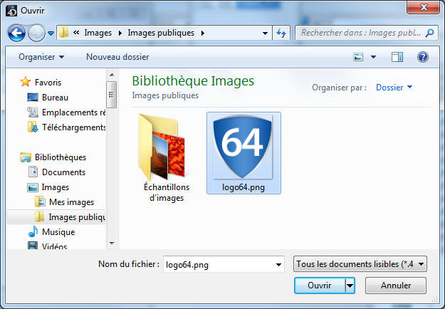L’utilisateur importe le fichier nommé logo64.png dans un champ image :