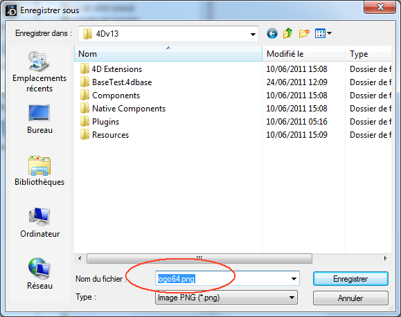 Par la suite, l’utilisateur enregistre le contenu du champ image : le nom logo64.png est proposé dans la boîte de dialogue (à noter qu’il s’agit d’un nom par défaut, il peut être modifié) :