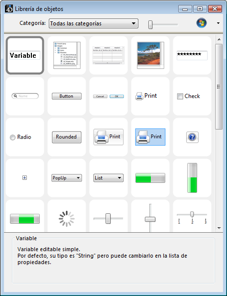 Ciertos objetos están relacionados a una plataforma (Windows o Macintosh). Puede filtrar los objetos mostrados de acuerdo a la plataforma utilizando el botón ubicado en la esquina superior derecha de la ventana.