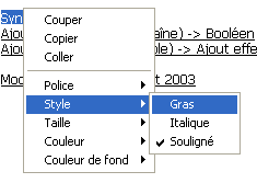 Un pop up menu hiérarchique s’affiche :