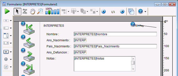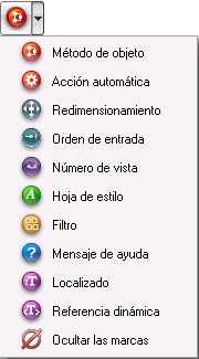 El editor de formularios permite utilizar marcas para facilitar la visualización de las propiedades de los objetos.