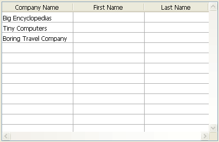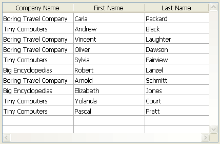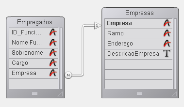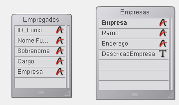 O campo [Empresas]Nome está associado à primeira coluna de um list box. Os campos [Empregados]Nome e [Empregados]Sobrenome estão associados às duas colunas seguintes. A fonte de dados do list box é a seleção atual.